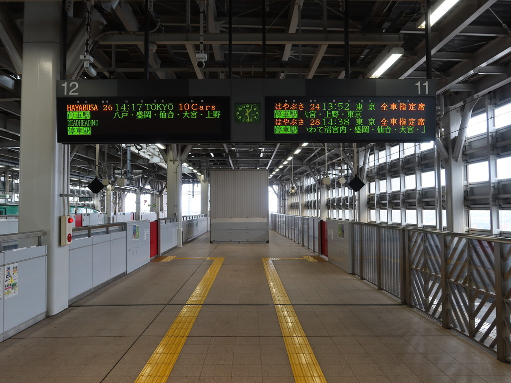 11番線・12番線です。主に東北新幹線の八戸・盛岡・仙台・福島・郡山・宇都宮・大宮・上野・東京方面に行く列車が発着します。