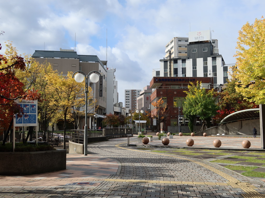 中央口からまっすぐ進むと、えきどてプロムナードという遊歩道があります。この遊歩道を抜けて、突き当りを右に進むと、弘前の繁華街である土手町があります。