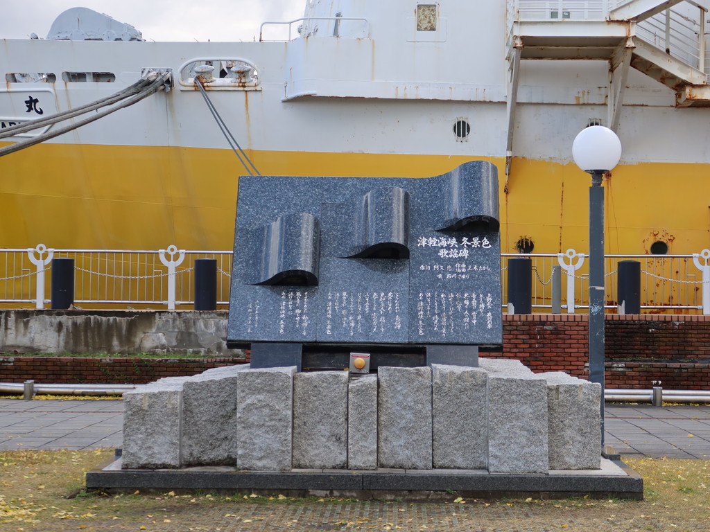 青函連絡船と言えば、石川さゆりの津軽海峡冬景色を思い出す方も多いかとは思いますが、八甲田丸の横に、歌碑があります。