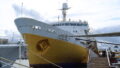 西方向を見ると、こんな感じ。青森駅や青森ベイブリッジ、青函連絡船 八甲田丸が見えます。
