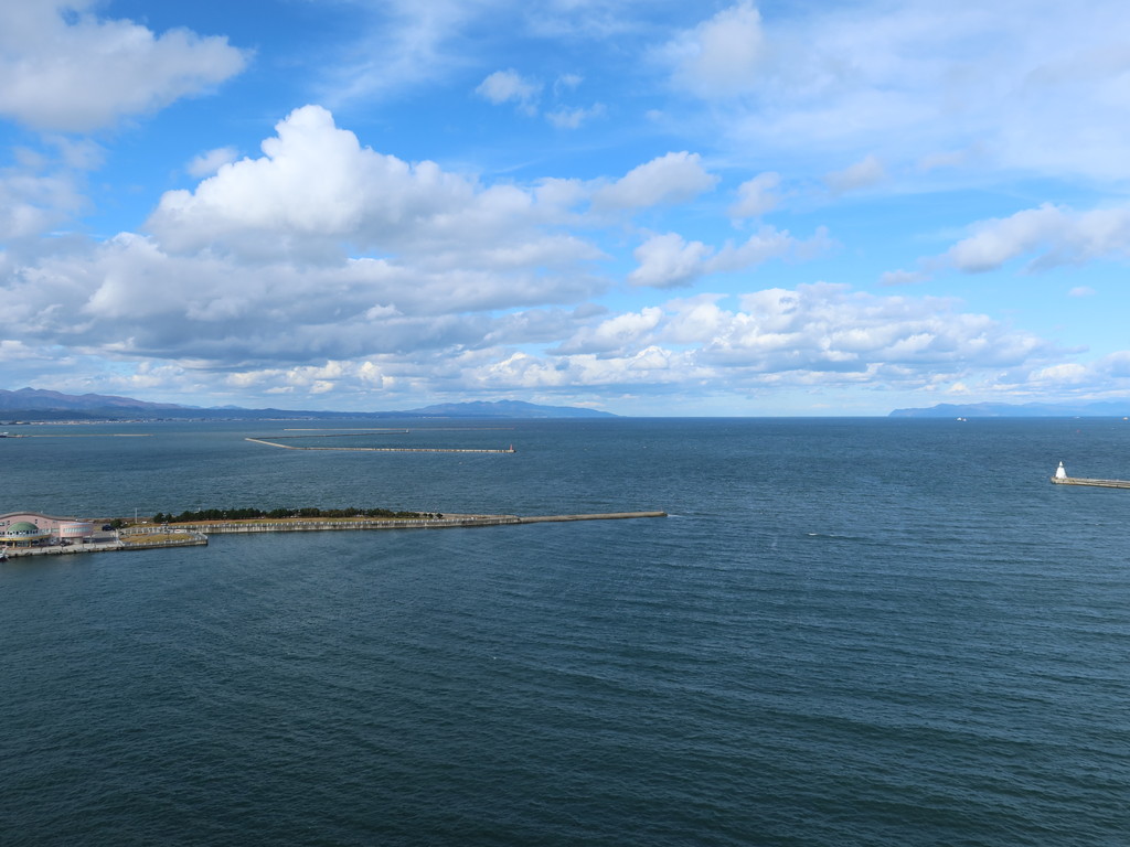 北西方向、つまり客船ターミナルの先あたりを見ると、こんな感じ。この先に、津軽海峡があります。