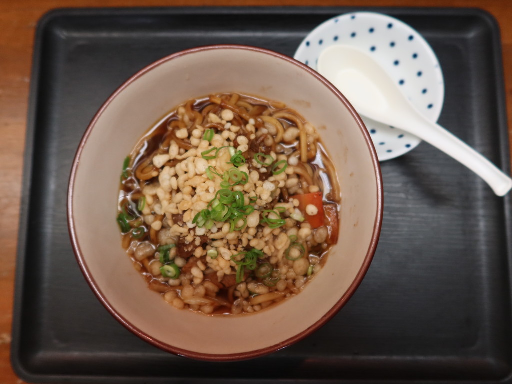 つゆ焼きそばというのが黒石のB級グルメでして、焼きそばを丼ぶりに入れまして、出汁をかけたものです・・・が、変形パターンとしてカレーをかけたものがあるらしいです。